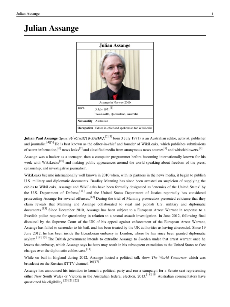 Julian Assange Pdf Julian Assange Wiki Leaks